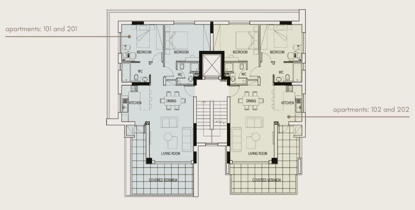 This is a modern 3 storeys building and contains 6 luxury apartments of 2 bedrooms.