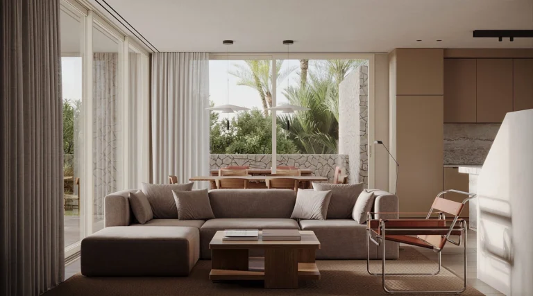 Villas are nestled in the lush peninsula of Pegeia, a breath away from the crystalline Coral Bay beach, promising a