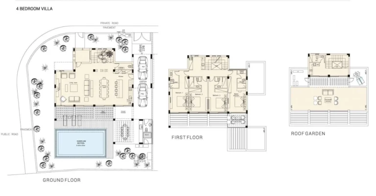 The villa is designed in a large plot and enjoys a private swimming pool with spacious outdoor areas.