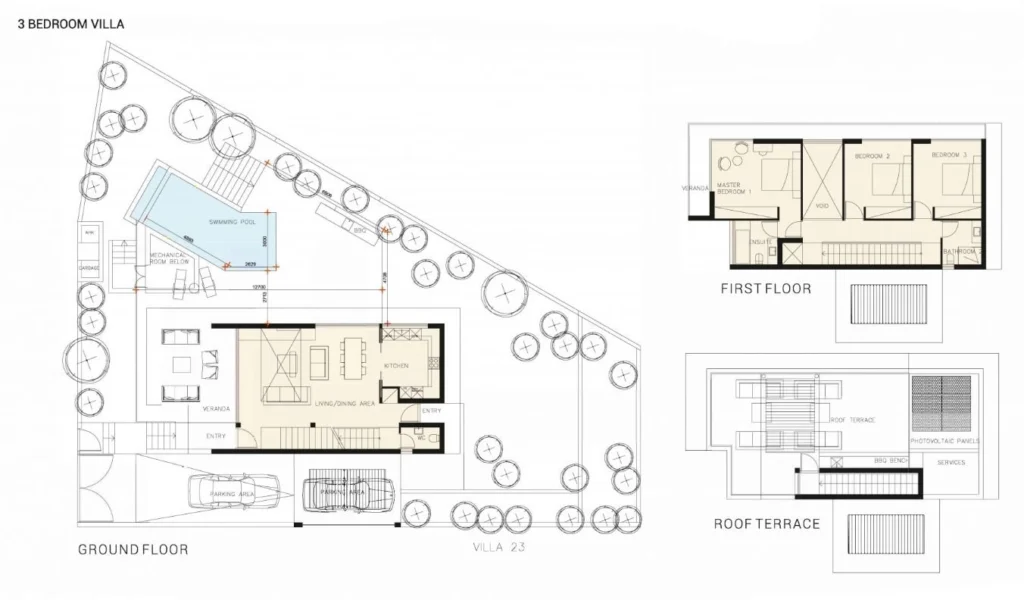 This is a unique 3 bedroom villa for sale next to a 5-star beach hotel and close to a plethora of Paphos’ most popular attractions and amenities, such as the Paphos tourist area, harbour and the Kings Avenue Mall. The villa offers spacious interiors and a private swimming pool in a large plot. Its superior finishes, specifications and unique location provide elite buyers the opportunity to taste the luxury Cyprus Mediterranean lifestyle living.