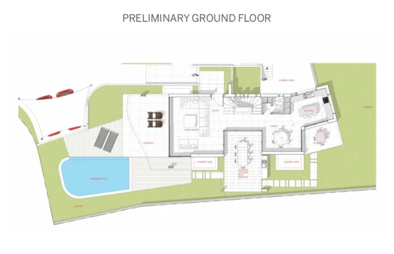 The villa features a bright and airy living room, a stylish dining area ideal for hosting, and a modern, fully equipped kitchen. Designed for both comfort and convenience, the property includes private parking, a lift serving all floors, and a private swimming pool — perfect for relaxing under the Cyprus sun.