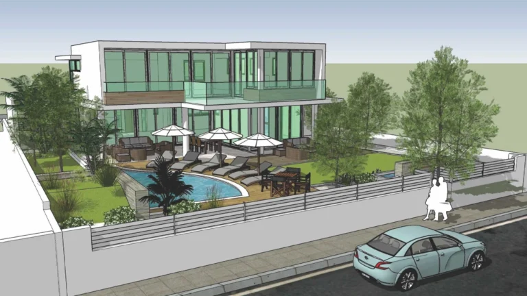 This villa features 4 bedrooms and is conveniently located near the sandy beach. Offering a private swimming pool, spacious verandas, and sun terraces, it provides breathtaking views of the Mediterranean. Additionally, the estate includes available plots of land for sale, complete with building permissions for constructing houses. All essential amenities such as well-maintained asphalt roads, electricity, water supply, lighting, and drainage are readily available. Situated on the outskirts of one of the finest beaches in the Paphos region, this area is renowned for its exclusivity in the real estate market of Cyprus.