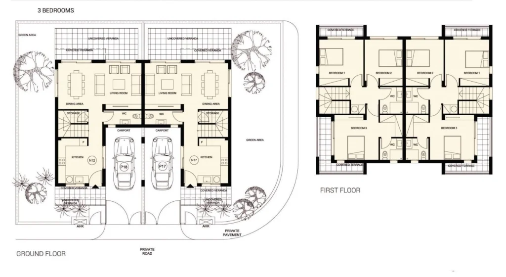 This is an exceptional property development that combines both traditional Mediterranean and Modern 3 and 4 bedroom villas along with 2 and 3 bedroom semi detached houses for sale. The properties are surrounded by beautiful landscapes in the village of Mandria in the district of Paphos. All residences enjoy spacious outdoor areas and covered verandas in a tranquil setting, perfect for raising a family and spending relaxing summer vacations. The residences are within walking distance to known sandy beaches and other amenities such as bars and local taverns. The development is ideally located nearby the Paphos International Airport and also the Paphos – Limassol highway.