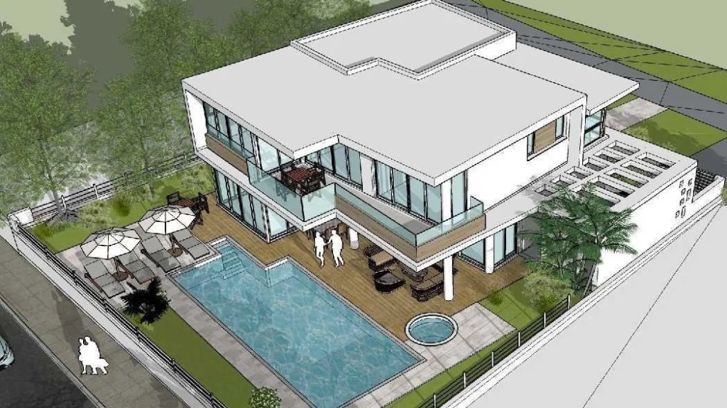 This individual villa features four bedrooms and is conveniently located near the sandy beach. Offering a private swimming pool, spacious verandas, and sun terraces, it provides breathtaking views of the Mediterranean. Additionally, the estate includes available plots of land for sale, complete with building permissions for constructing houses. All essential amenities such as well-maintained asphalt roads, electricity, water supply, lighting, and drainage are readily available. Situated on the outskirts of one of the finest beaches in the Paphos region, this area is renowned for its exclusivity in the Cyprus real estate market.