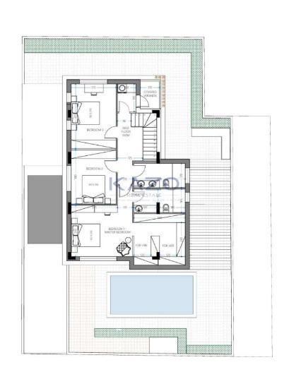 This elegant three-bedroom villa offers a perfect blend of contemporary design and Mediterranean charm. With spacious living areas, floor-to-ceiling windows, and expansive terraces, the villa maximizes natural light and provides seamless indoor-outdoor living.