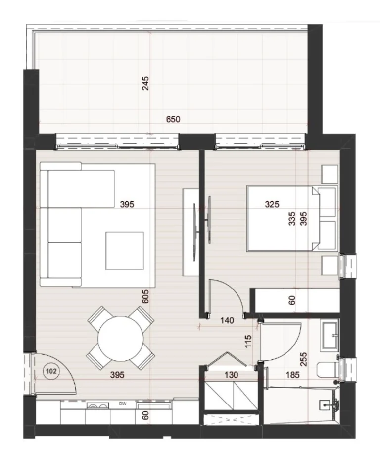 ✓ Balcony doors 2.40 m height