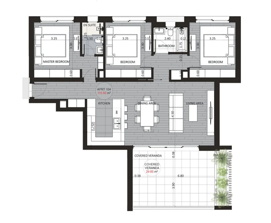 • Internal Area: 115 m²