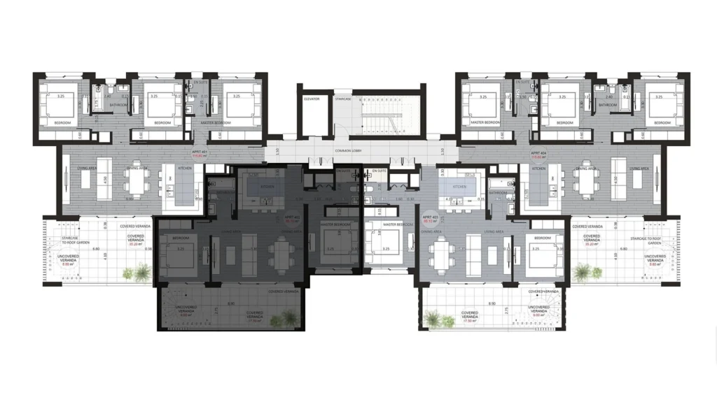Our professionals allowed elegance to meet with functionality in every detail: Onix Blue Panels and granite finishes are complimented by our high ceilings and tall interior doors. Extra features are present in our penthouses with their own spa and spacious terraces to spend unforgettable evenings with a community united by the experience of luxury and quality.