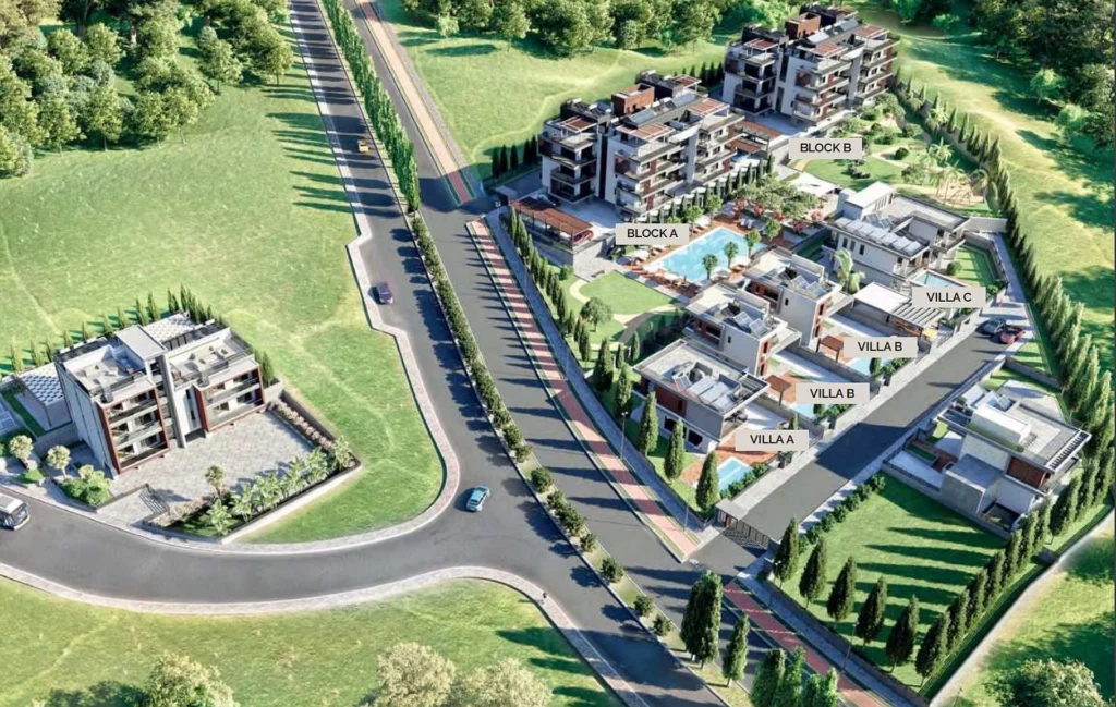 The project is split into different zones. There are 28 exquisite apartments, each with one, two, or three bedrooms, within separate modern blocks. For residents who prefer detached houses, our project additionally offers 7 luxurious villas with additional amenities to upraise the level of your living. More than half of the plot area is allocated for landscaping of the territory – with walking zones, recreation, picnics, sports and entertainment, playgrounds.