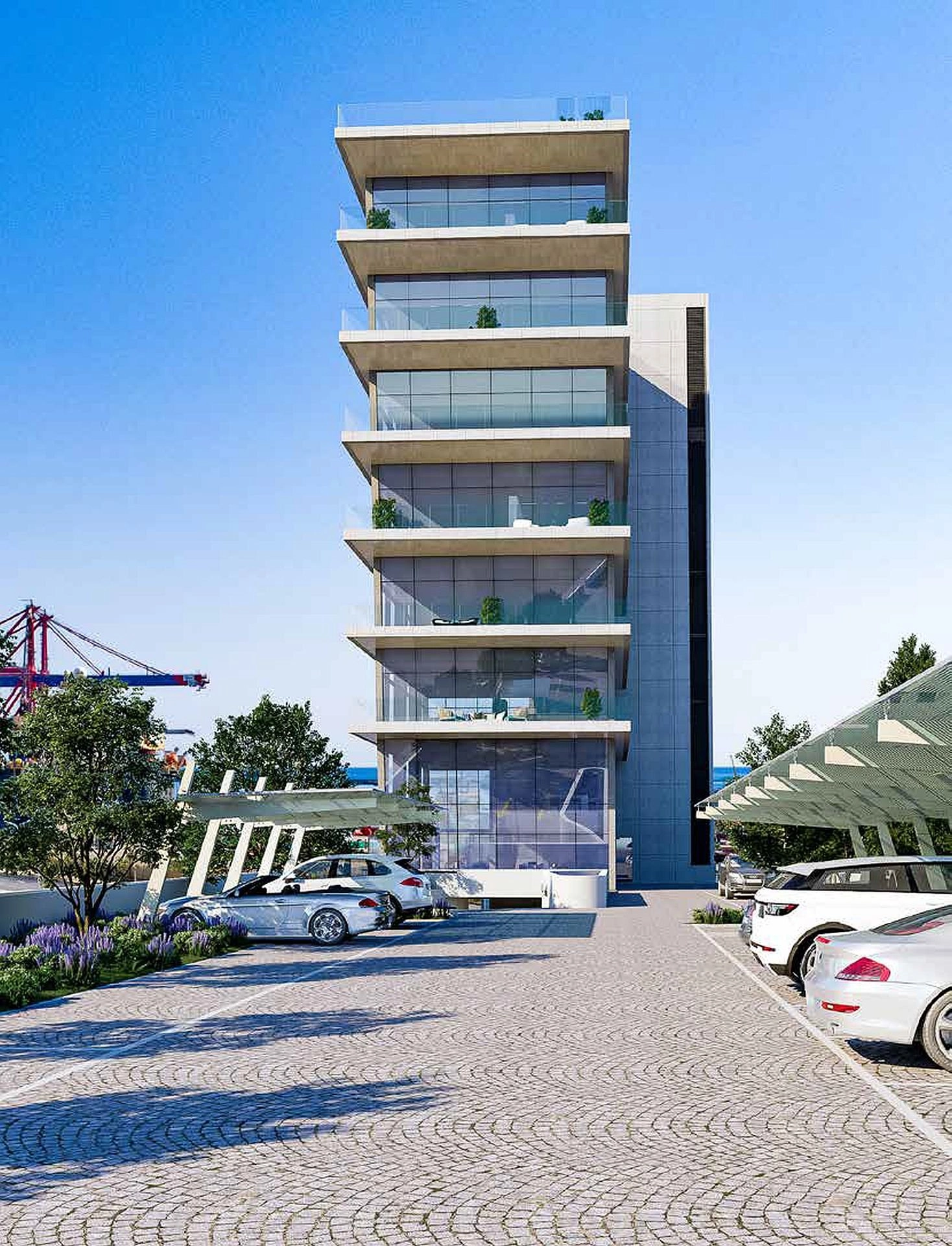 This is a striking business centre in the western part of Limassol. Our approach to commercial office design is largely determined by location and this area is becoming one of the most attractive and developed parts. The project would be a suitable choice for a growing business. This building is designed for professionals who appreciate an inspiring work environment with panoramic sea and city views.