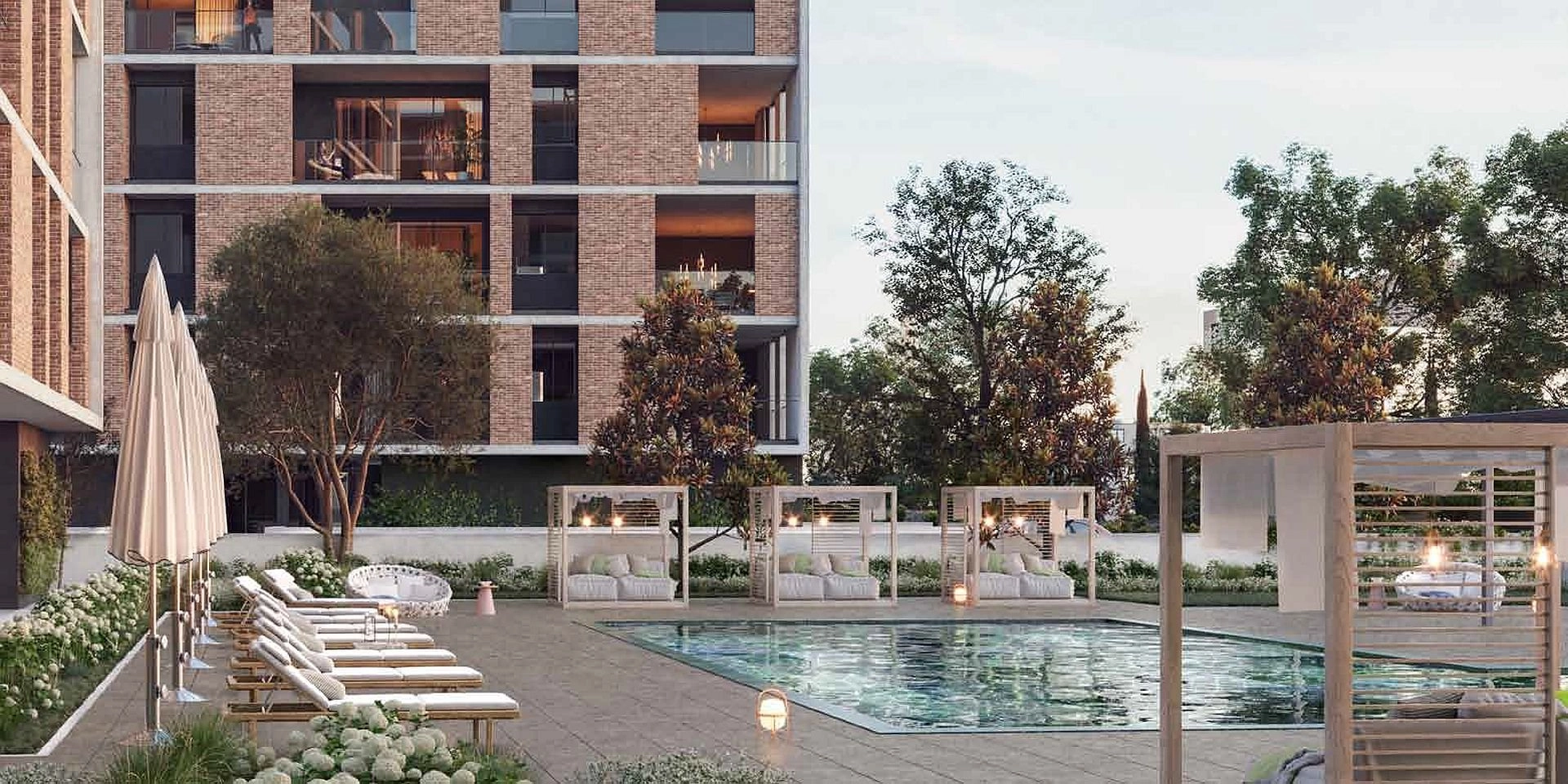 – Penthouses have private roof terraces with pools.