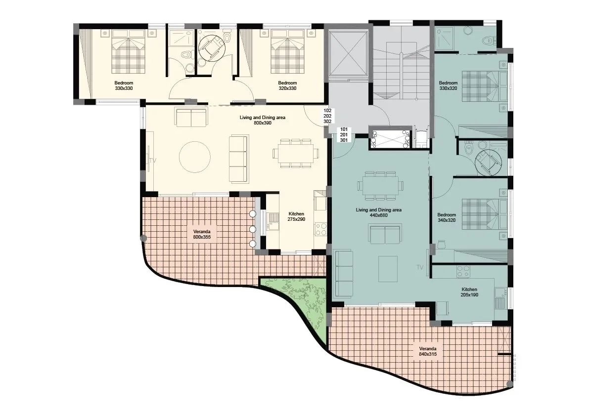 From the moment you step into this residential complex, you will be enveloped in an ambiance of pure luxury. Our apartments are designed with a keen eye for detail and built with top-of-the-line materials to deliver an uncompromising level of quality. The meticulously designed interiors feature state-of-the-art appliances, sumptuous finishes, and spacious, open-concept layouts, offering an airy atmosphere infused with natural light.