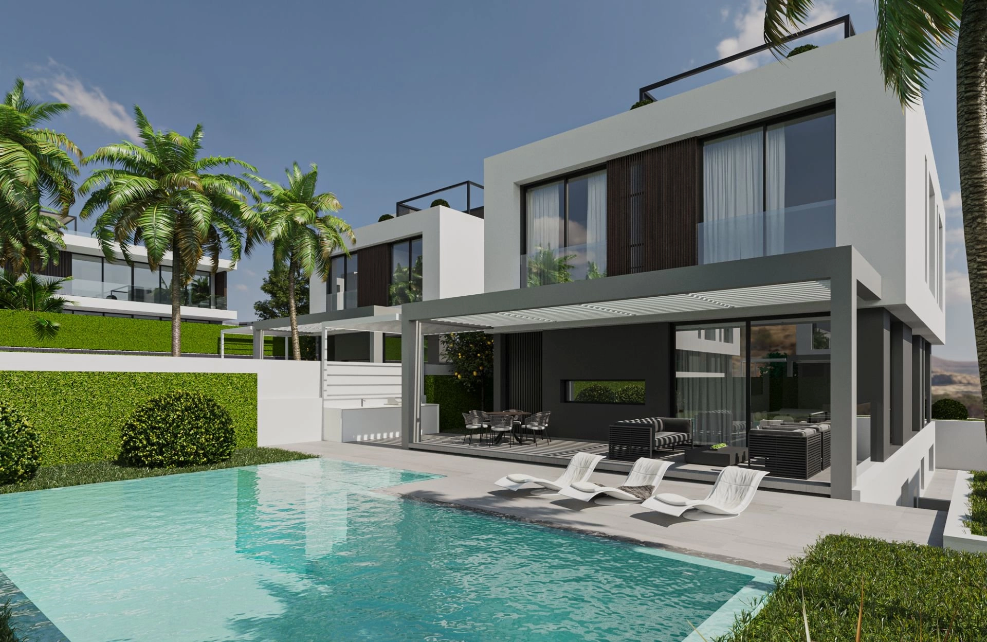Welcome to luxury residential development in Limassol Designed with your well-being at heart, villas promises an unrivalled experience and an enhance quality of life throughout your residential journey. This project is the latest luxury sea view development for people thinking about buying a property in Limassol. It features 14 elegant, impeccably designed homes with exquisite interiors. Your choice is delightfully overwhelming from small semidetached 3 bedroom houses to huge luxurious 6-7 bedroom villas with the unique views. The area of residences varies from 183 to 560 m2. Each bedroom has a private bathroom. Parking spaces can accommodate from 2 to 4 cars. The houses have a modern finish made of eco-friendly materials. The famous designers are responsible for the interior design of the villas. All properties have built-in furniture and finishes. For maximum convenience, in the basement, there is an additional free area, which you can use to arrange a cinema or a gym.