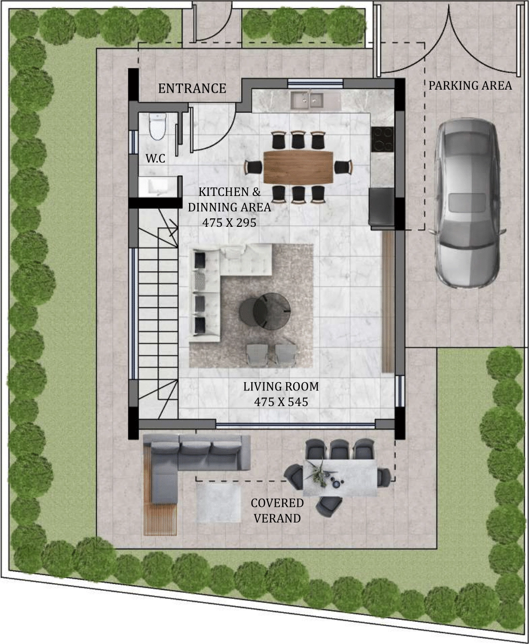 • Covered Veranda: 32 m²