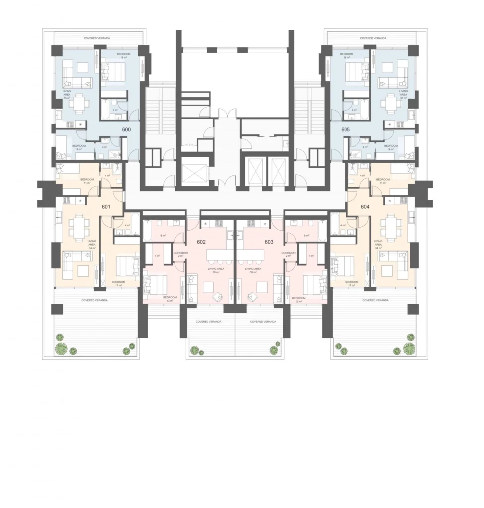 • Residents’ lounge, co-working centre, and sky gardens