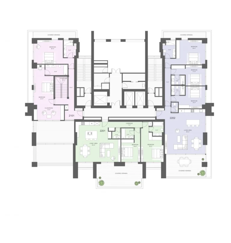 • Residents’ lounge, co-working centre, and sky gardens