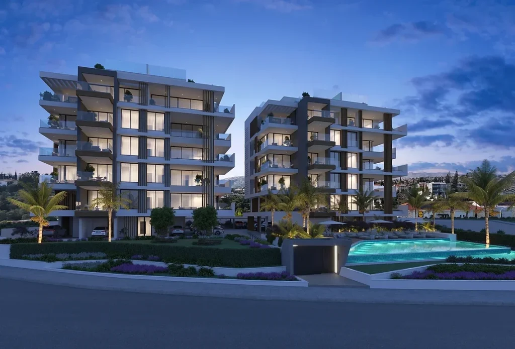 This is an exceptional contemporary residential complex, comprising of two 5-storey buildings with large swimming pool and beautiful landscaped garden. Each building consists of seven 2 bedroom apartments, four 3 bedroom apartments and two unique 3 bedroom penthouses with private pools, roof gardens and amazing unobstructed sea view.