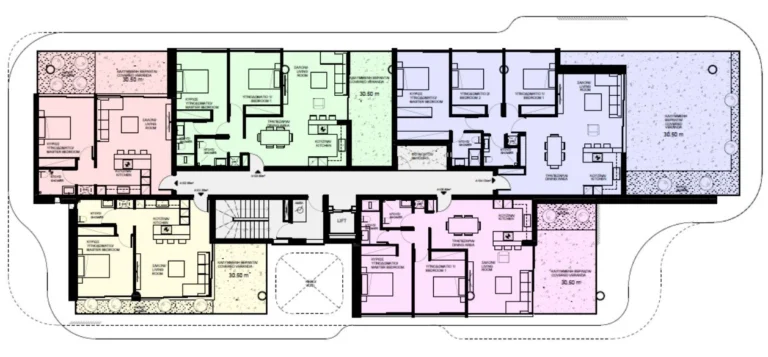 The club-type project consisting of 23 apartments and 2 penthouses is located in the most popular area of Limassol – Agios Tychonas. This is a new modern complex designed for living off the coast, combines all the conditions for a Mediterranean lifestyle in an urban environment.