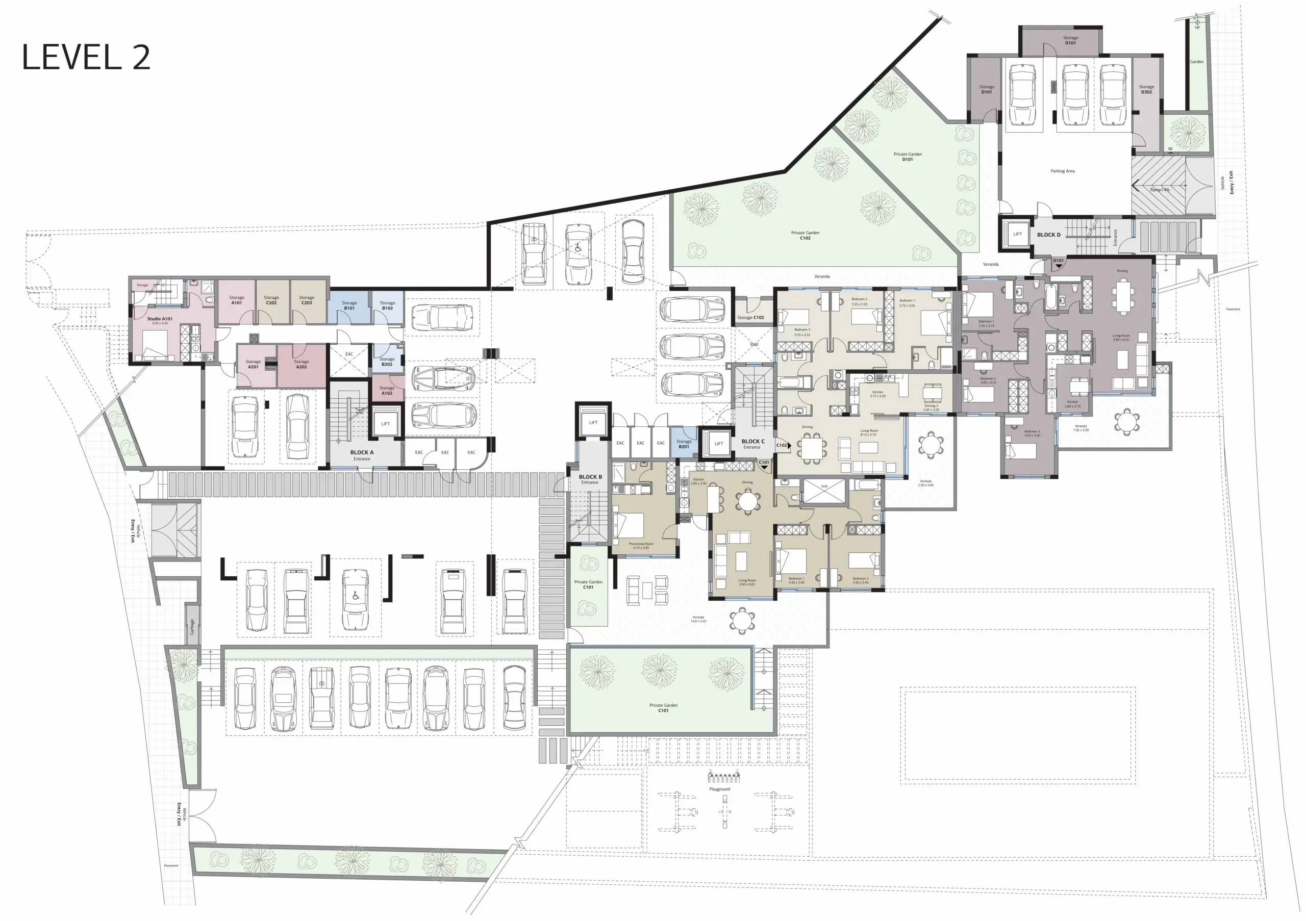 This gated building community is located at an elevated location, nestled within beautiful surroundings and panoramic views. It consists of 4 double-storey blocks, all connected to a magnificent pool with a sun terrace and a playground, ensuring that both residents and visitors enjoy the spacious and welcoming atmosphere. Designed with convenience in mind, this residential gated community presents spacious 2&3 bedroom apartments with options for private gardens or rooftop terraces, along with underground parking and storage spaces for each apartment.