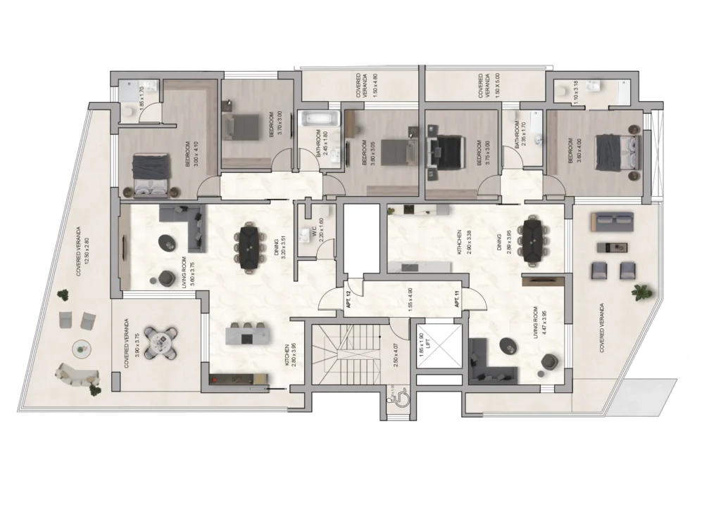 Well-Designed Layouts: The flats have well-thought-out layouts that maximize space utilization and functionality. Each unit offers a spacious living area, well-proportioned bedrooms, and an efficient kitchen and dining area. Open-concept designs, large windows for natural light, and large terraces.