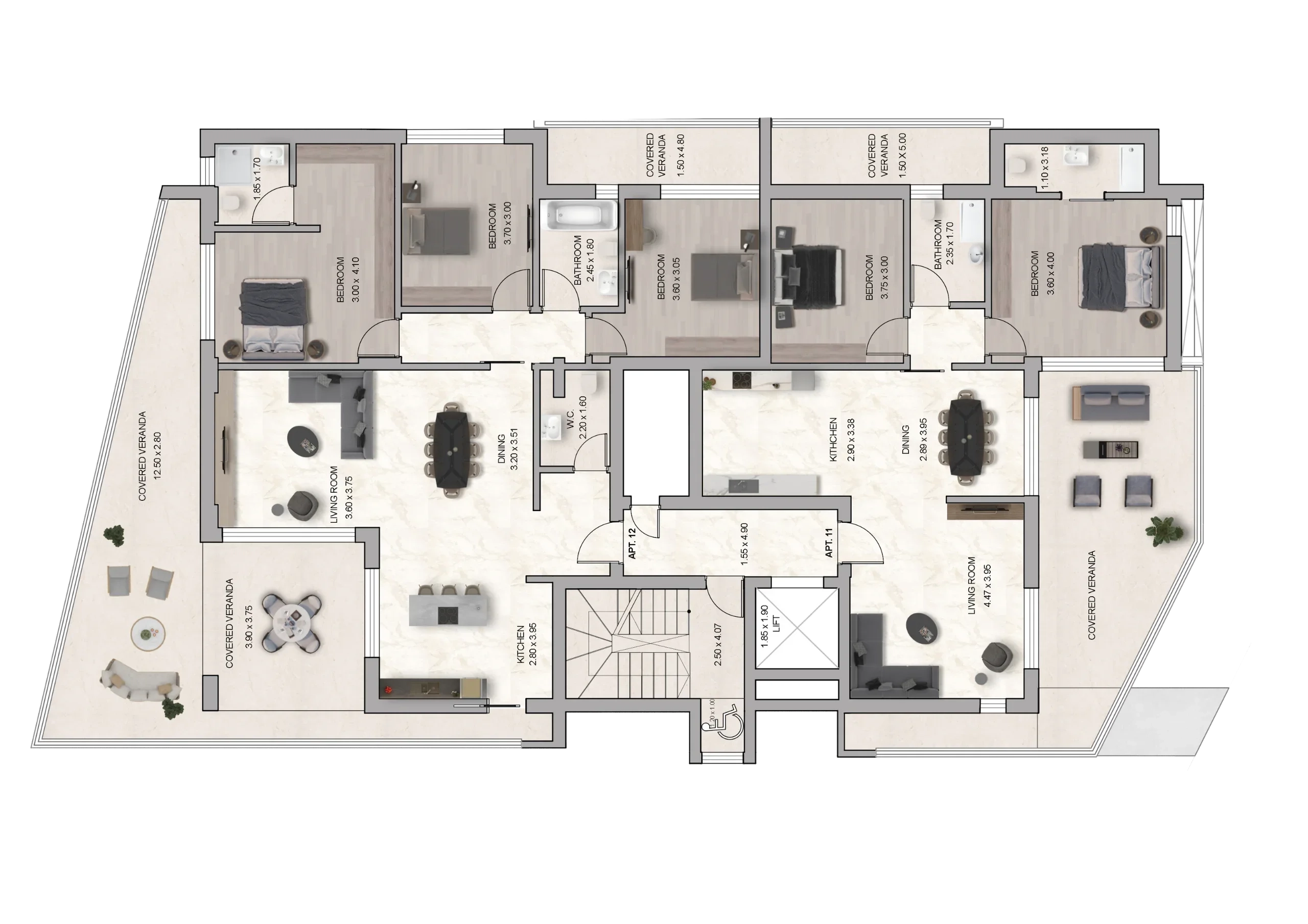 Well-Designed Layouts: The flats have well-thought-out layouts that maximize space utilization and functionality. Each unit offers a spacious living area, well-proportioned bedrooms, and an efficient kitchen and dining area. Open-concept designs, large windows for natural light, and large terraces.