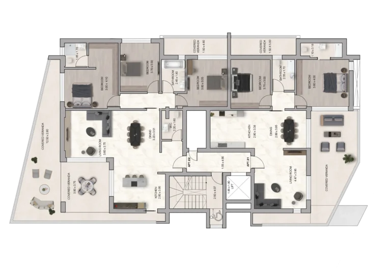 Well-Designed Layouts: The flats have well-thought-out layouts that maximize space utilization and functionality. Each unit offers a spacious living area, well-proportioned bedrooms, and an efficient kitchen and dining area. Open-concept designs, large windows for natural light, and large terraces.