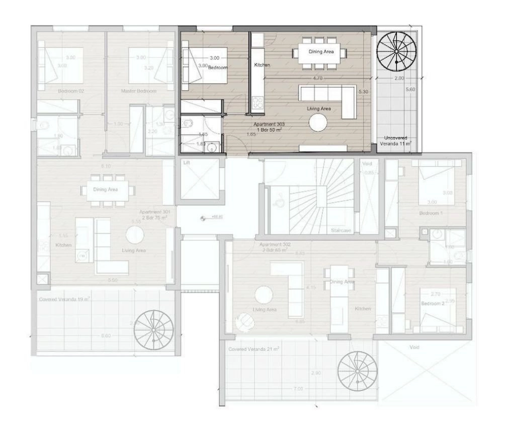 Each apartment is designed with a blend of contemporary architecture and practicality, providing comfortable living spaces. Whether enjoying the views from the balconies or accessing nearby facilities, residents can expect a balanced lifestyle at this residential development.