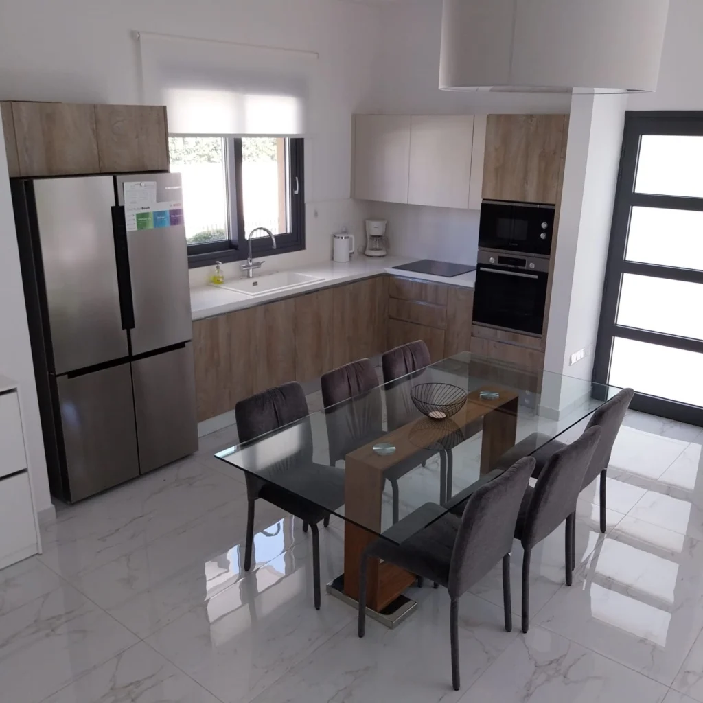 The 4-bedroom semi-detached houses follow a modern modular design with exterior wood finishes and private landscaped gardens with mature trees and a convenient automatic irrigation system. The 2 bedroom homes include under floor heating and double glazed windows for maximum comfort throughout the year as well as provisional electric shutters, solar system for hot water, ample parking as well as access to the children’s playground and communal swimming pool.