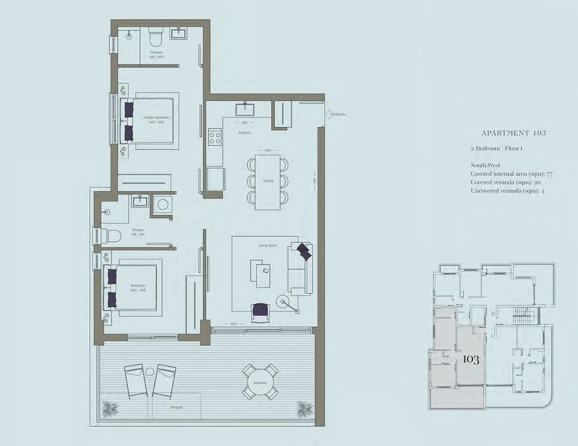 This project is situated inside the Main ring of Limassol Town, 3 minutes walking distance from the prestigious Makarios Avenue and quite stroll to the most famous Sandy beach of Enaerios. Distance: 400 meters from the famous Trilogy Project and the coastline. The Project comprises of 9 2-bedroom apartments on 3 floors. The top floor apartments have spacious roof gardens. The apartments are designed by one of the most famous designers in Cyprus. All amenities such as supermarkets, restaurants and schools are at the doorstep of this project.