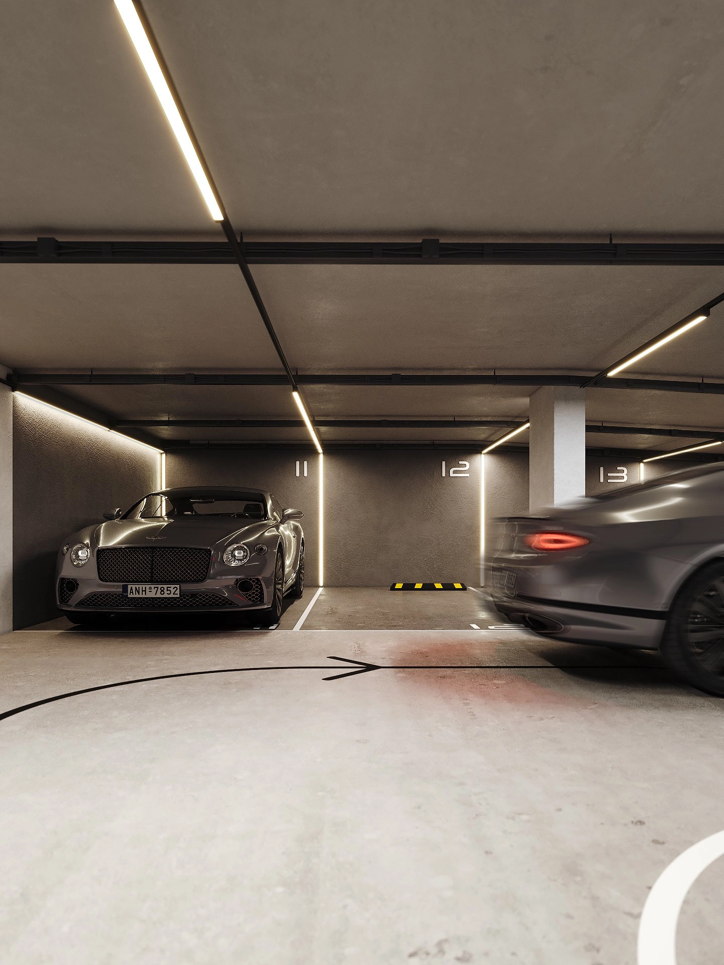 Business center includes a two-level underground parking facility. This feature provides a convenient and secure space for parking of 18 cars, ensuring the building is easily accessible to both employees and visitors. Each office has its own storage room.