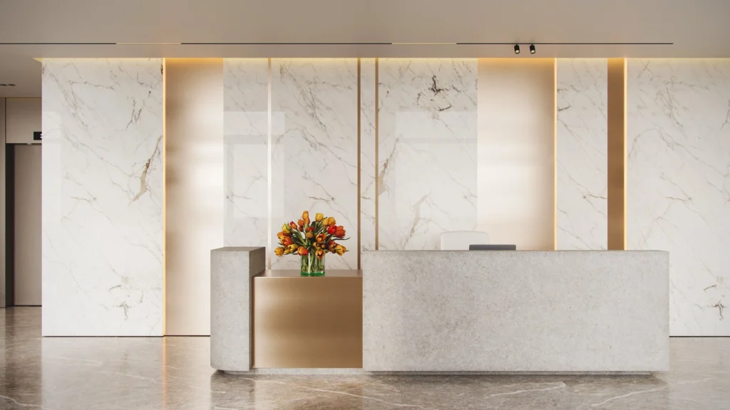Upon entering the building, you’re welcomed into a spacious, inviting lobby. Above the lobby, the building comprises six floors of open-space office areas. These floors are presented in a “shell core” condition, allowing for maximum flexibility and customization according to the needs and preferences of the new owner. The open-space design provides a blank canvas for future occupants to configure the layout, partitions, and amenities to suit their specific requirements and cater to a variety of businesses, from tech startups to consultancy firms. Large windows line the front exterior of the building, allowing abundant natural light to flood the space and offering inspiring views of the city skyline.