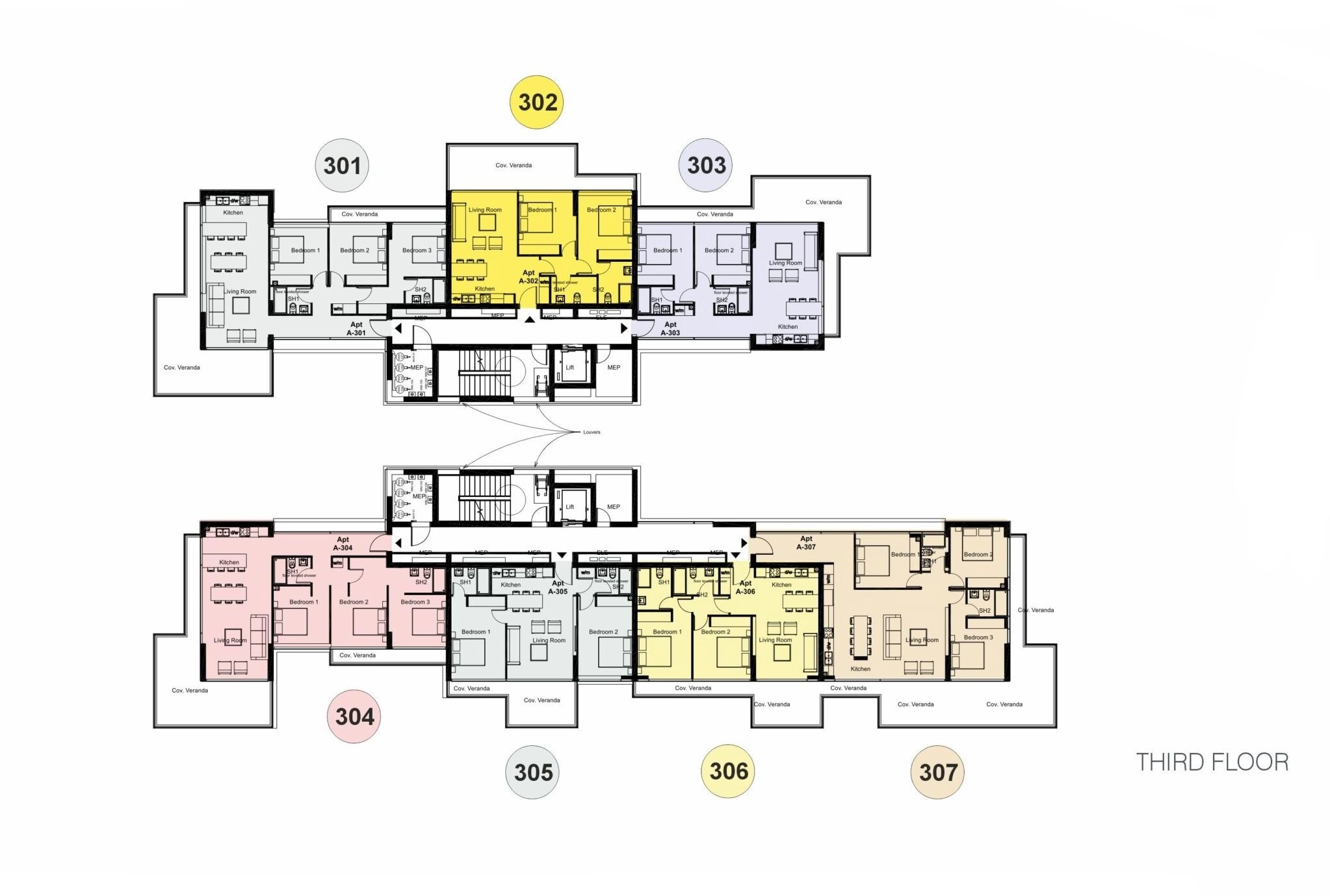 Apartment No. 302 is a beautiful 2 bedroom apartment on the third floor of Block A.