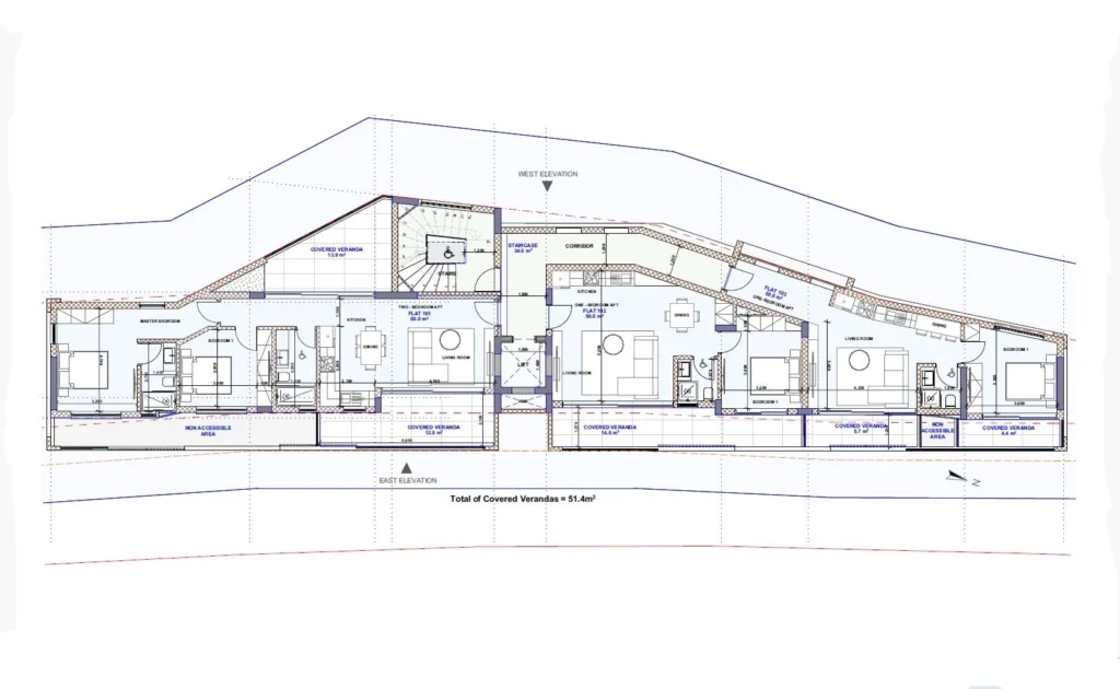 This is a modern four-story building with 11 stylish apartments. It offers a range of 1, 2, and 3-bedroom apartments and features a communal swimming pool for residents to enjoy. The highlight of the project is the three-bedroom penthouses located on the 4th floor, each featuring a private roof garden with its own jacuzzi, offering the ultimate luxury and privacy. Each apartment is designed with comfortable bedrooms, a bright open-plan kitchen, living area, and a large veranda, perfect for relaxing and enjoying the views. Every unit also comes with its own parking space and storage room.