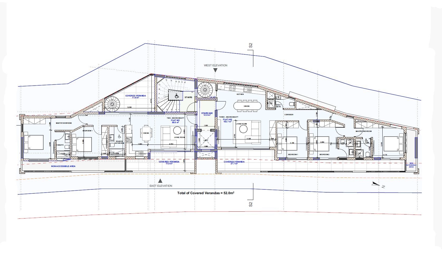 This is a modern four-story building with 11 stylish apartments. It offers a range of 1, 2, and 3-bedroom apartments and features a communal swimming pool for residents to enjoy. The highlight of the project is the three-bedroom penthouses located on the 4th floor, each featuring a private roof garden with its own jacuzzi, offering the ultimate luxury and privacy. Each apartment is designed with comfortable bedrooms, a bright open-plan kitchen, living area, and a large veranda, perfect for relaxing and enjoying the views. Every unit also comes with its own parking space and storage room.