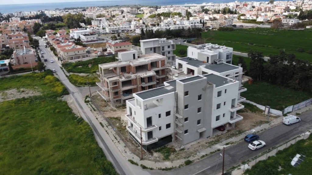 Apartment for sale in Universal area, Paphos, just 5 minutes drive from the sea. The residential complex consists of three modern blocks, each with seven spacious and cozy apartments, 21 apartments in total.The complex has a high level of comfort and security, ideal for families and professionals. Each apartment is made using high-quality materials and thoughtful finishes. Spacious and bright rooms, panoramic windows, modern kitchens and bathrooms create an atmosphere of comfort and luxury. In addition, each apartment has a covered veranda. The project provides for the installation of a solar panel system, an alarm system and an intercom system.One of the main advantages of the complex is a communal swimming pool, accessible only to residents.