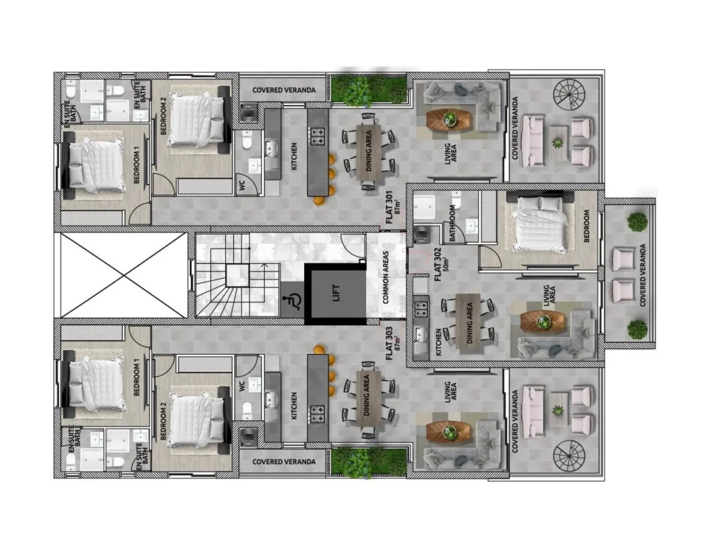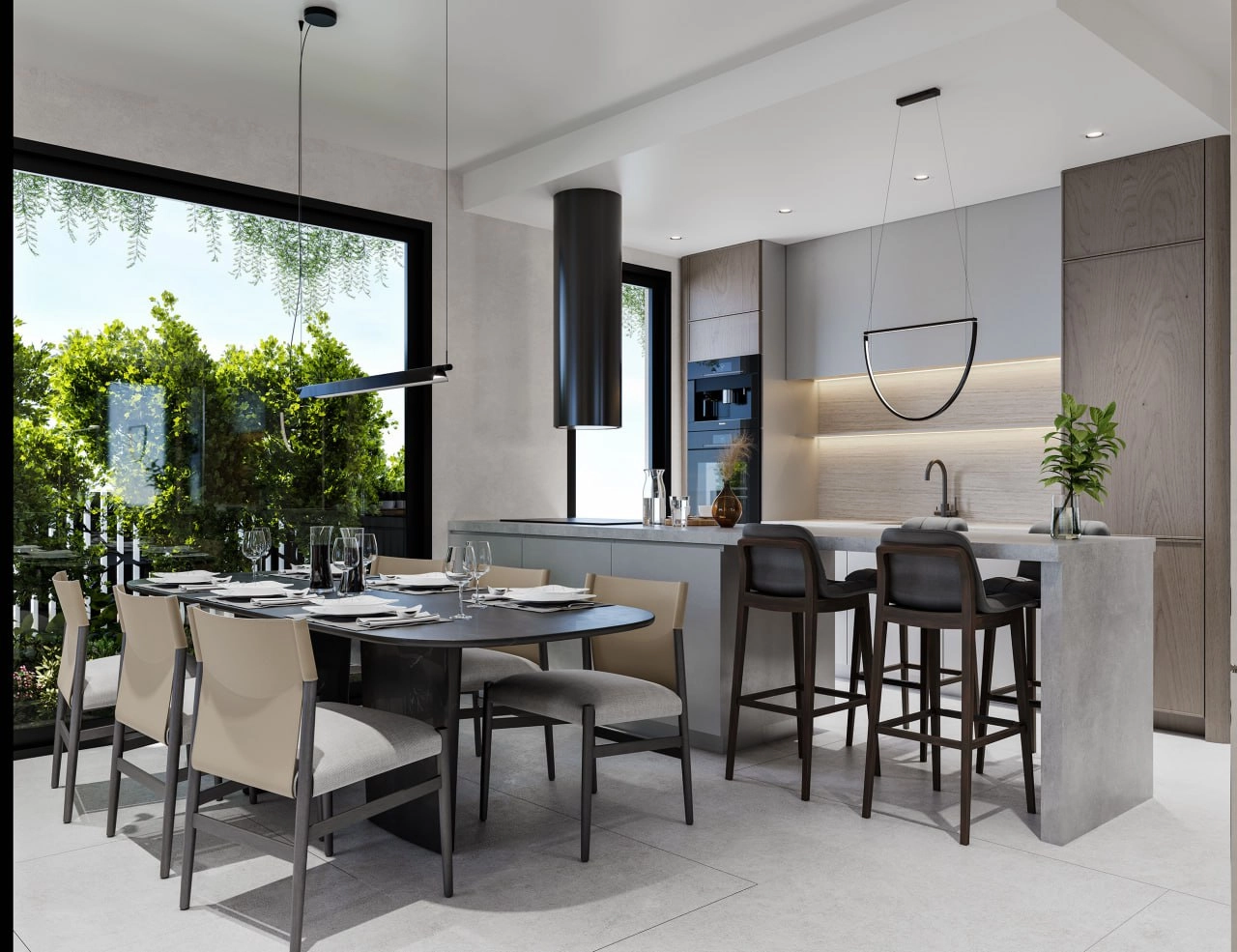 Modern apartment for sale in the area of Agios Dometios, Nicosia. The layout includes a large living room, kitchen, two bedrooms, 2 bathrooms and 1 guest toilet. The apartment is equipped with a spacious terrace. There is also a parking space and a storage room. The construction uses the highest quality materials with excellent thermal insulation characteristics. Modern style and elegant design emphasize the high standard of living. The convenient location near the city infrastructure makes this apartment an ideal choice for a comfortable life.