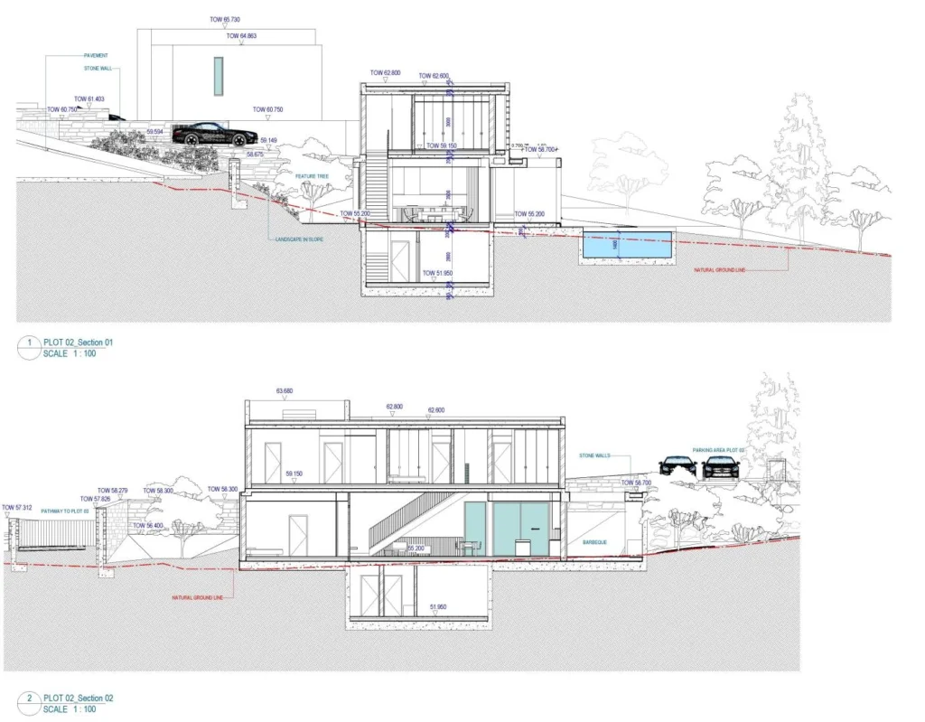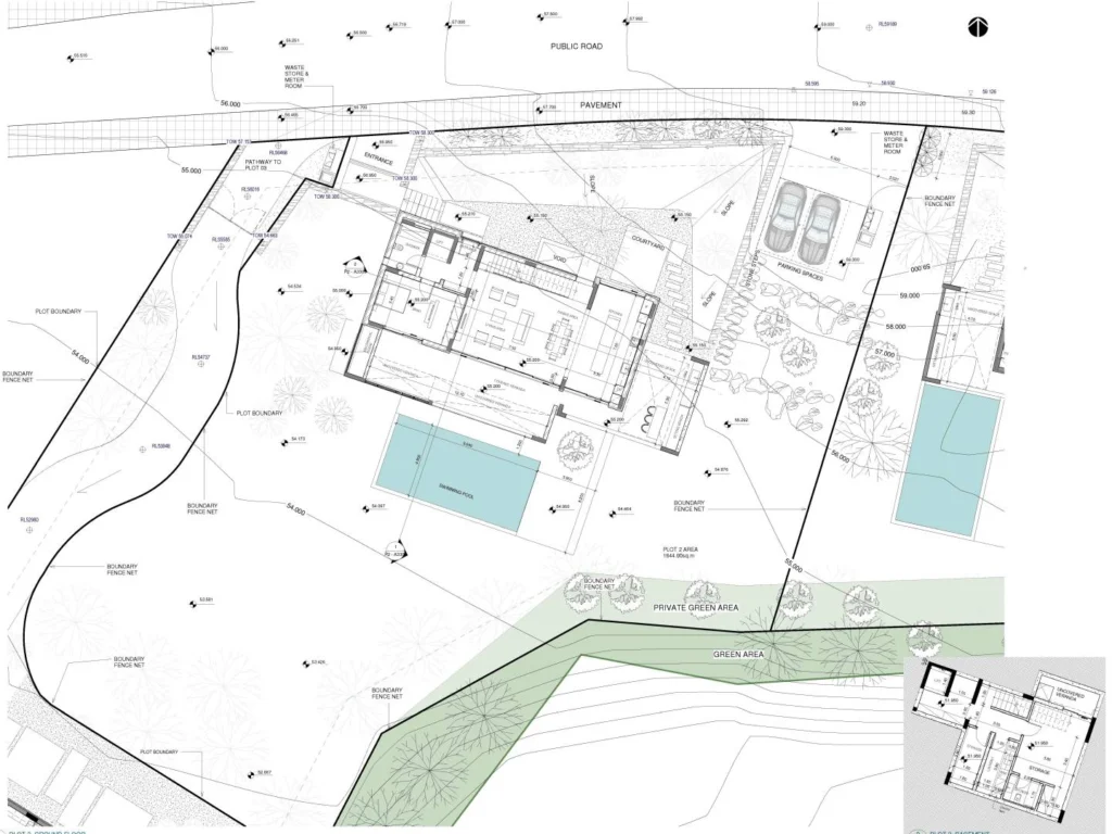 For sale is a three-storey off-plan house with 5 bedrooms. The project was designed to harmoniously combine modern style with the picturesque surroundings. The total area of the land plot with a swimming pool and landscape is 1644 m2. The total living area is 248 m2 plus 20 m2 of outdoor veranda. Two covered parking spaces. The area is mostly covered with shrubs, lawns and trees. Included in the price are underfloor heating, VRV system, built-in MIELE appliances and a private pool.
