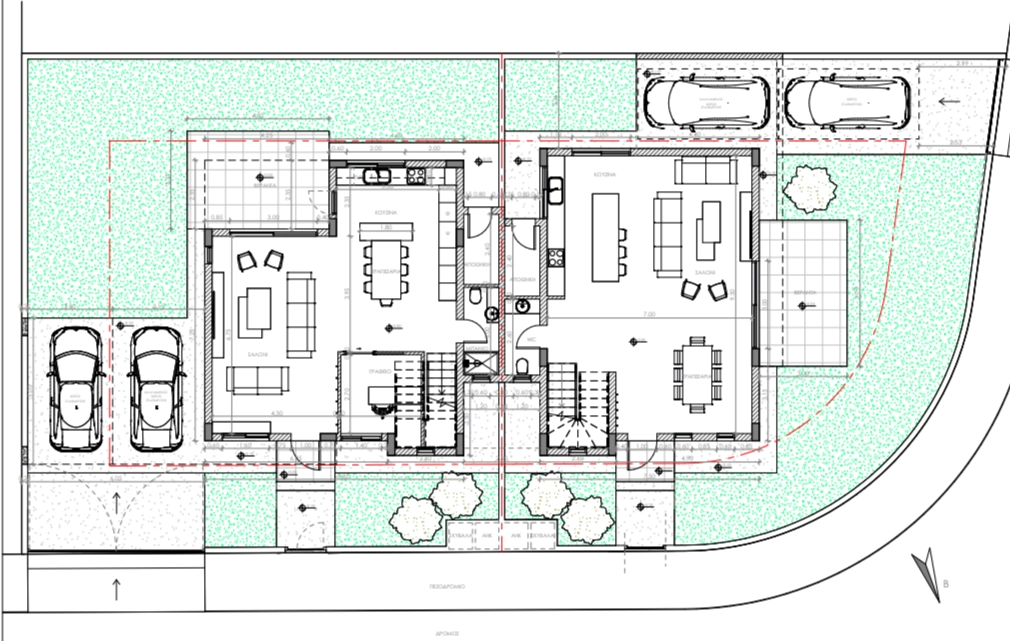 Modern duplex house for sale in Geri area near Pen Hill, Nicosia. The residence on the right side has two levels and is designed with maximum comfort in mind. The project includes an open-plan living room and kitchen, as well as a spacious terrace.It also provides for the installation of a 3 kW photovoltaic system, energy-saving windows, and a thermal facade system. High-quality ceramics and plumbing are used in the construction. In addition, the set includes 2 intercoms and an electric gate. There are 2 parking spaces for cars.Near the complex there are necessary shops and supermarkets, clinics, schools and offices.The project is in the off-plan stage.