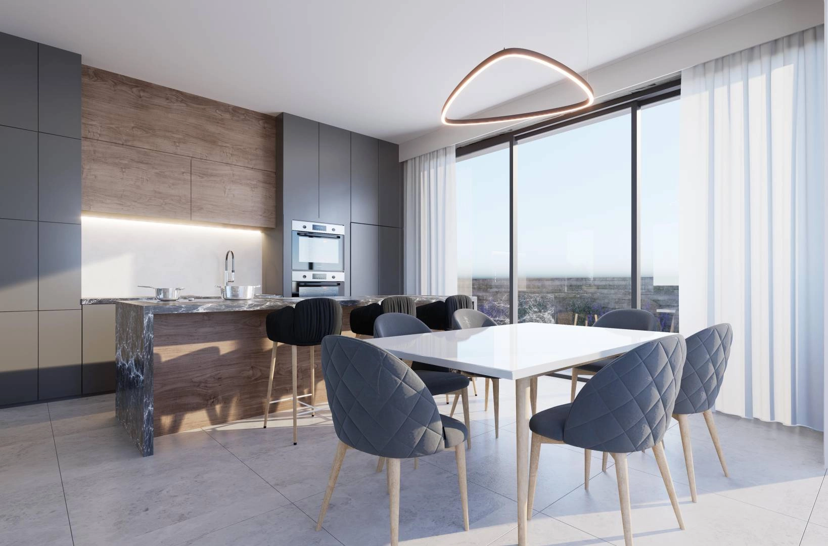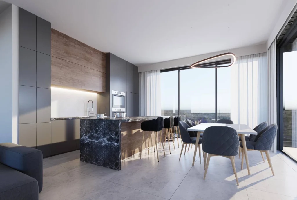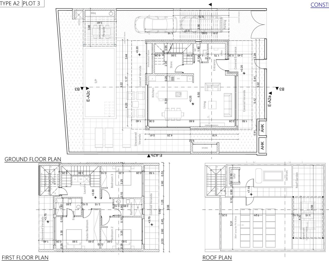 A villa in a new complex in Paphos is offered for sale. The complex is a collection of 12 luxury three-bedroom villas located in the tourist area of Geroskipou. Each villa features modern architecture, carefully designed spacious interior spaces and open-plan living areas with high ceilings providing an abundance of natural light through sliding doors and floor-to-ceiling windows. Each villa has underfloor heating and a separate area on each floor, VRV cooling system providing efficient and customizable climate control, 3.1 m high ceilings and 2.4 m high doors in all rooms, full thermal insulation, energy-efficient thin aluminum providing energy efficiency category A, private parking for 2 cars with electric gates and an electric car charger, a security system with an alarm system and video surveillance with 4 cameras, a photovoltaic system, storerooms and utility rooms in all villas, kitchen appliances included in all accommodation facilities, a barbecue area at the kitchen level with a place for outdoor entertainment, a landscaped garden.