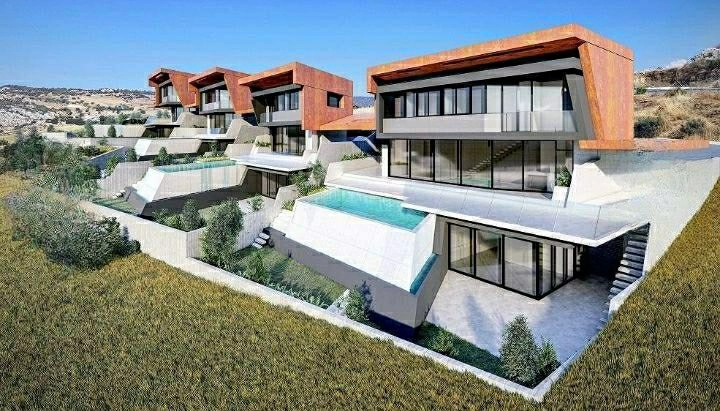 House for sale with beautiful panoramic views in Parekklisia, Limassol, a short drive to the sea. Each house in the complex has three levels and is designed with maximum comfort in mind. The residence has an open-plan living room and kitchen, as well as a covered veranda. There is a spacious courtyard with a private pool. Energy efficiency class A. There are 2 parking spaces for cars.The house is located close to all amenities and has easy access to the motorway. It is an ideal option for both living and investment.The project is in the off-plan stage.