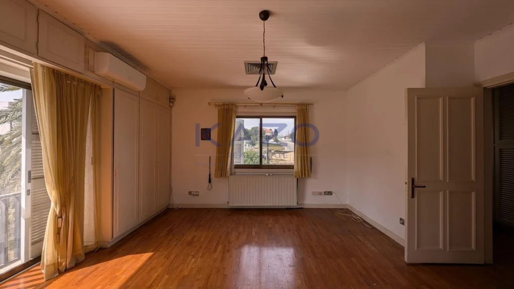 The property under consideration is a three bedroom house located in Aglantzia, Nicosia. The ground floor of the house comprises of a living room, bar, open plan dining-sitting area, kitchen, and a guests’ toilet and a storage area. The first floor comprises of three bedrooms (one of which is en-suite with a bathroom), an office and a bathroom. Furthermore the property offers a basement which is being used as a parking area and service room. The asset is located approximately 1.3km from the motorway and approximately 6km from Strovolos Nicosia. The property falls within Zone Κα6, with a building coefficient of 90%, coverage of 50%, and permission for 2 floors (10m) of construction. Energy Category: E