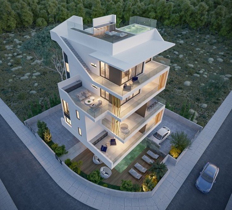 For sale is a stunning off-plan apartment building located in the charming area of Agios Theodoros. This impressive property boasts a generous internal space of 432 square meters, spread across 8 flats, with 3 one bedroom apartments and 1 studio being on the first floor, 1 one bedroom apartment, 1 two bedroom apartment and 1 studio on the second floor and a spacious two bedroom penthouse on the third floor. Each apartment offers a shower room, with the two bedroom flats having an en-suite shower as well. There’s one covered parking corresponding to each flat and ample covered veranda on each apartment, in order to enjoy the beautiful city view.