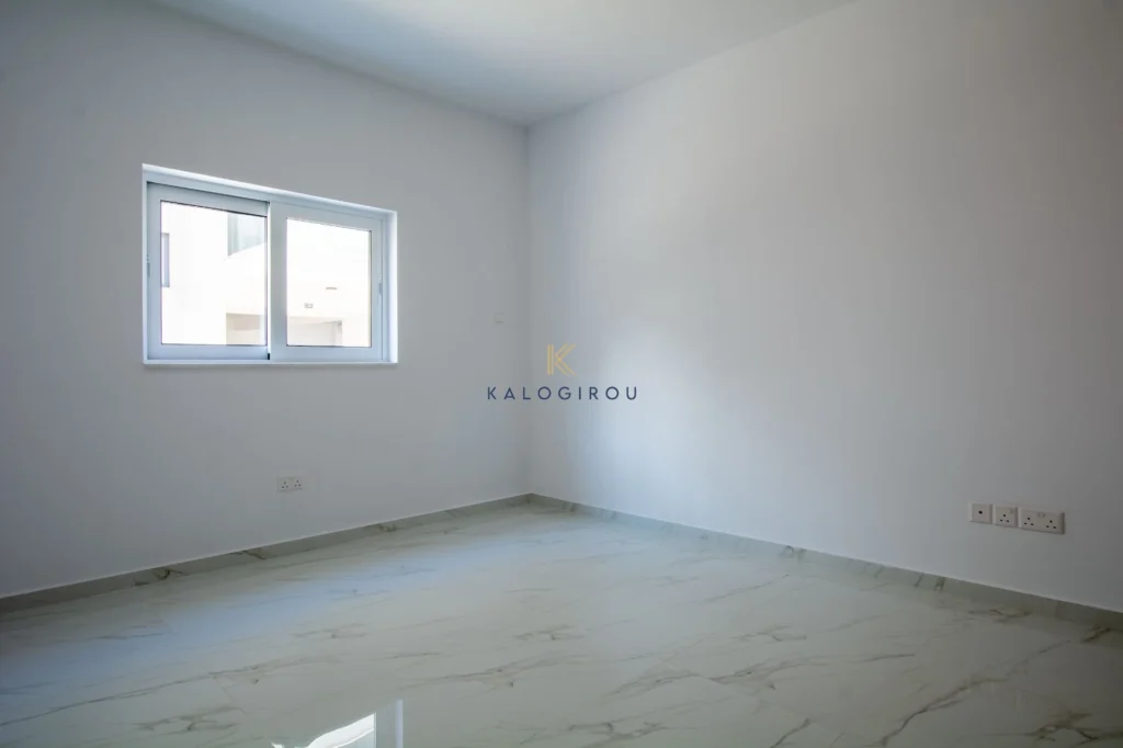 House for sale in Paralimni area, Famagusta. It has internal covered area of 152 sqm. The house consists of an open space layout that combines the living, kitchen & dining area, a guest wc, laundry room, a main bathroom with shower, three bedrooms, master is en suite with shower. In addition, the house has 27 sqm covered veranda and 31 sqm uncovered veranda. The residents have also access to one covered parking space.