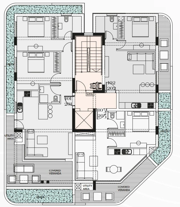The penthouse features superior finishes, private parking, and concierge services, ensuring a premium lifestyle. Over 75% of the surrounding area is dedicated to landscaped gardens with walking paths, ponds, large free-form swimming pools, separate children’s pool, Jacuzzi baths, and a playground—creating a peaceful, resort-style environment.