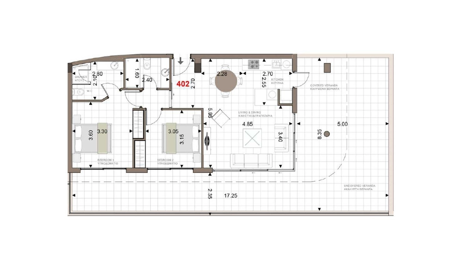 This spacious two-bedroom penthouse is located southwest of Limassol’s historic town centre, in one of the city’s most up-and-coming and green residential areas. Designed for both comfort and style, it offers a perfect balance of luxury living and convenient accessibility.