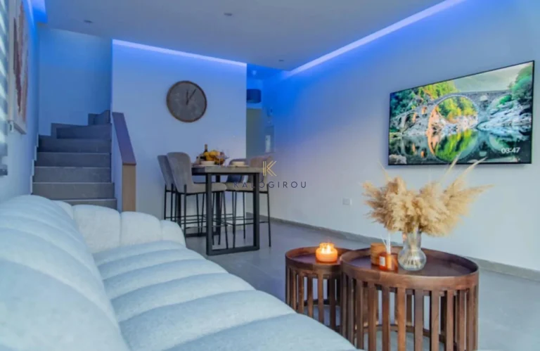 Double story, fully renovated house for sale in Dekeleia area, Larnaca. The ground floor consists of an open plan kitchen, dining area, living rooms, guest toilet and covered veranda. The first floor consists of two bedrooms, the main one is en-suite with shower and wc, a main bathroom with wc and amazing uncovered veranda. It is worth mentioning that both bedrooms have access to the veranda which benefit from side sea view and greenery.