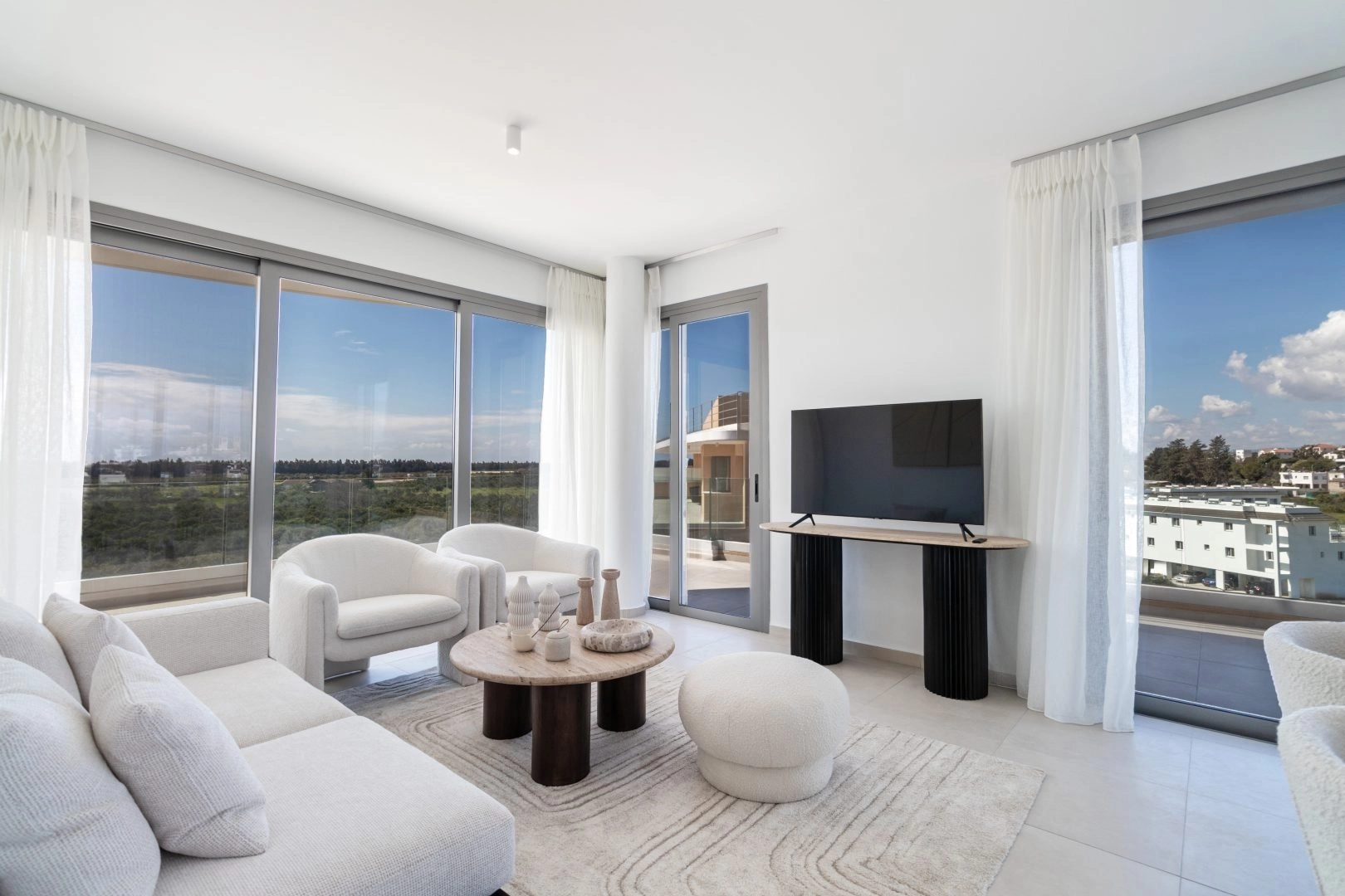 Residents benefit from ample parking, concierge services, landscaped gardens covering over 75% of the development, and access to large free-form swimming pools, children’s pools, Jacuzzi baths, and a playground. The location provides easy access to Limassol’s largest shopping mall, water park, international schools, pristine beaches, and the upcoming golf course, while also being within a short drive of both international airports and the scenic Troodos mountains.