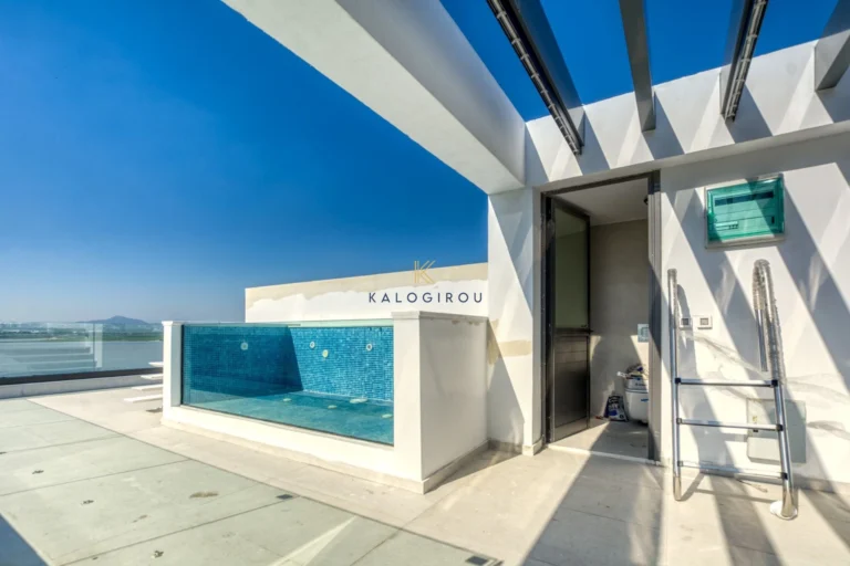 Top Floor apartment for sale in Makenzy area. The apartment is on the fifth floor and has a stunning view to the Salt Lake. It consists of an open plan kitchen, living and dining area, one common bathroom (with walk in shower), two bedrooms, master is en suite with shower, spacious covered veranda and a large roof garden. On the roof garden there is jacuzzi. In addition, the property has access to a covered parking on the ground level and storage.