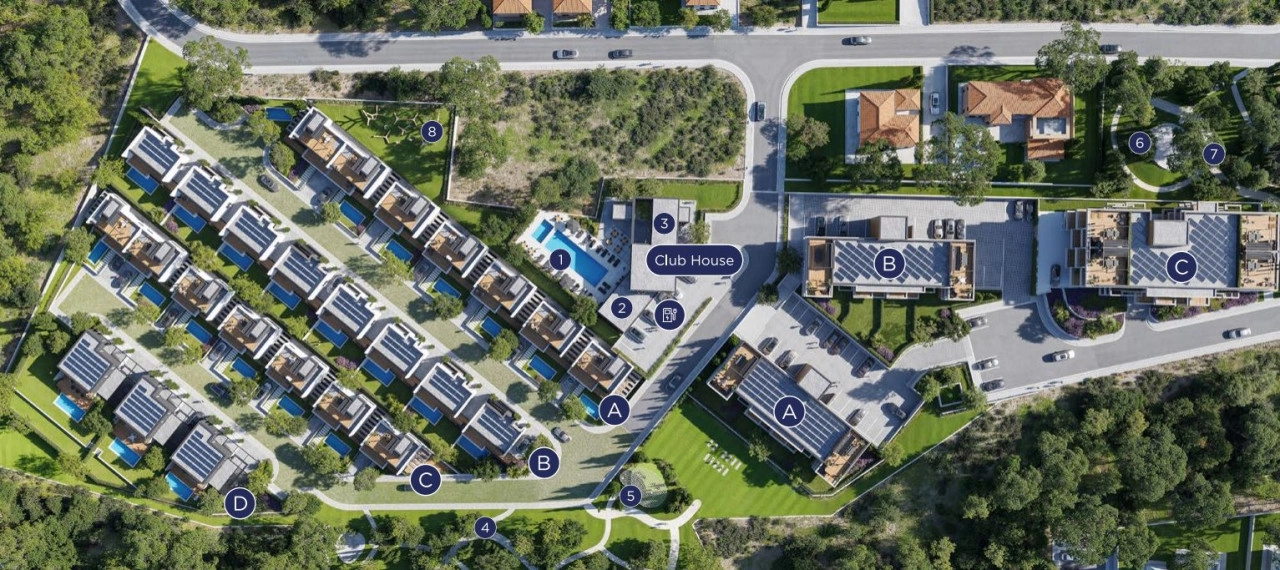 Gated community nestled on the hills of Limassol, designed for those seeking the perfect balance between outdoor and urban living. This exclusive residential project offers a range of thoughtfully designed homes, including spacious 3-bedroom houses and villas, as well as modern 1- and 2-bedroom apartments, providing a variety of living options to suit different lifestyles.
