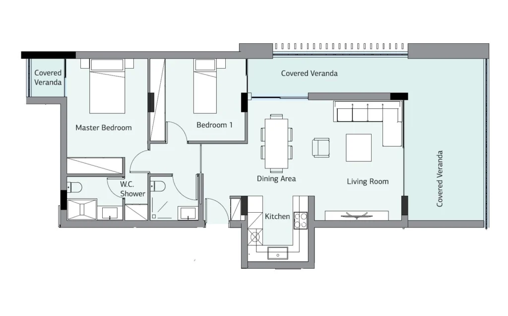 Designed with the modern way of living in mind, these apartments are configured to maximise floor area and optimise tree-top views from balconies. Day-to-day living areas benefit from full-height glass doors that embrace the balconies, while kitchen and dining layouts create year-round indoor/alfresco dining opportunities.
